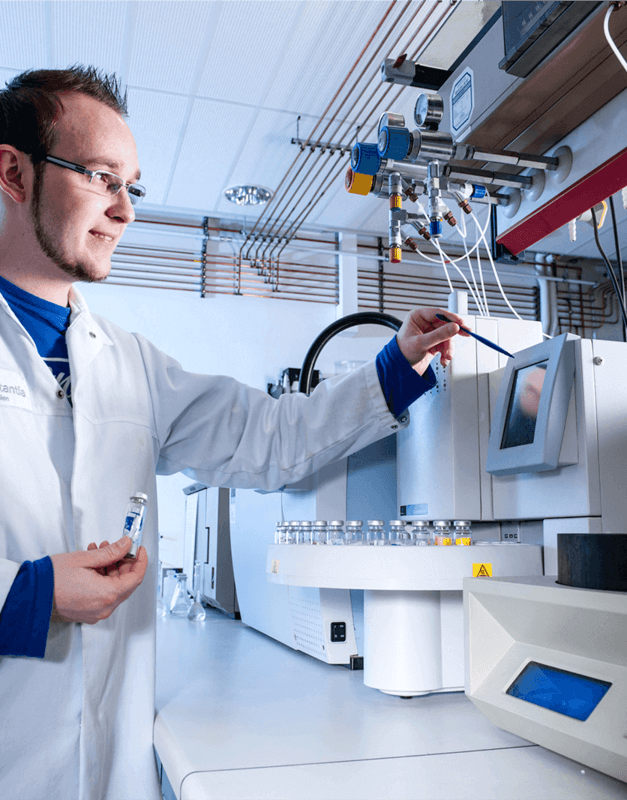 - A wide range of analytical and test equipment for checking properties of incoming raw materials and market samples/products up to pilot testing of various kind
