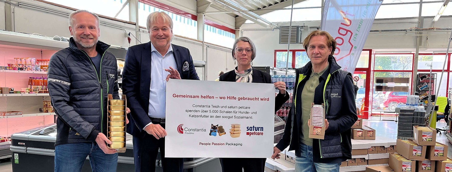 To help ease this burden, our Lower Austria plant, Constantia Teich, joined forces with saturn petcare to support customers of soogut Social Market Sankt Poelten. Together, the two companies donated more than 5,000 trays of cat and dog food, helping people in financial hardship continue to care for their animal companions.